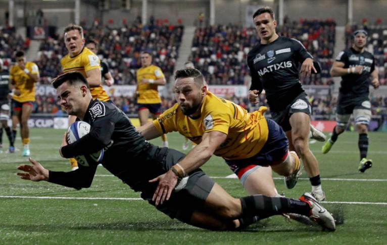 The Racing nine rifles a pass right across the face of the Welsh defensive line to his club-mate Gaël Fickou, dragging the Dragons wing Rio Dyer into the first tackle, and rendering it an impossible task for the remaining defenders to wrap and set up convincingly on the far side of the ruck.
