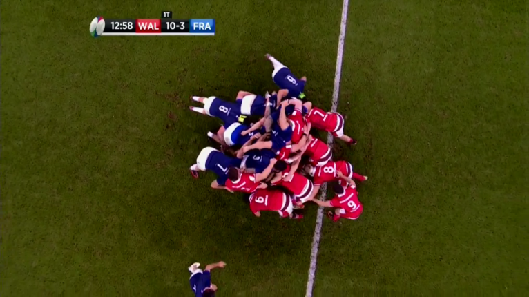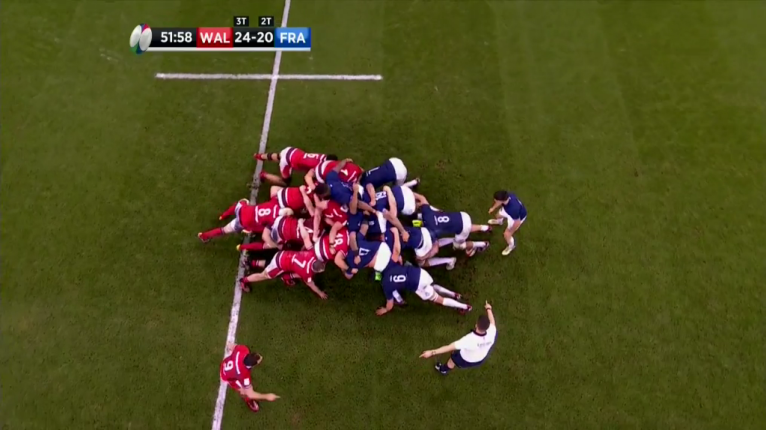 The binding of the Welsh hooker and loose-head has so comprehensively split apart the men concerned might as well have been in the neighbouring counties, as they look to escape the extreme pressure down their left-hand side.