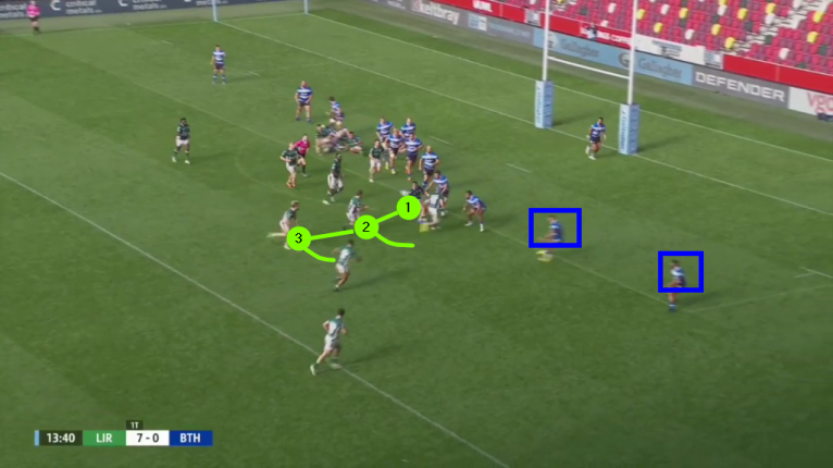Here Irish use the front man of the trio [loose forward Tom Pearson] to tip the defence in one direction, and the short crosskick to release their overload out wide in the other.