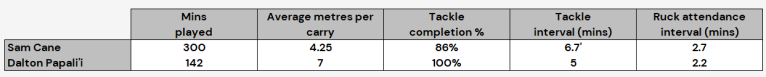 The truth of the matter is that Papali’i is already bigger – about three inches taller and 7-10 kilos heavier – than Cane, and he may already be better. Here are the raw stats from the 2022 Rugby Championship: