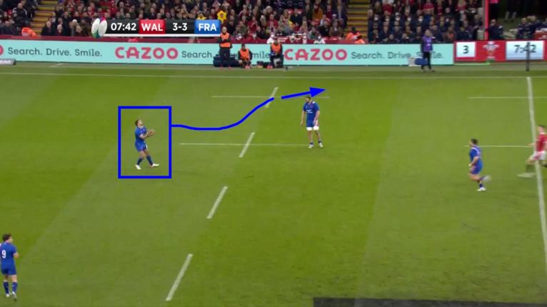 On this occasion there is a Welsh forward defending next to his right wing (Alex Cuthbert) and France enjoy a big advantage in numbers in the area.