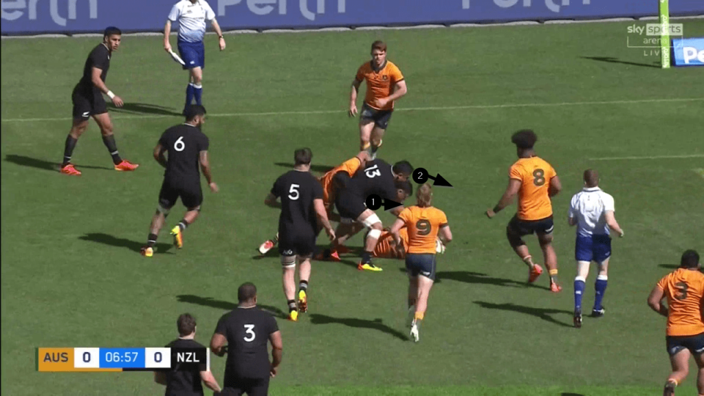 On this occasion, Havili tackles, and Lienert-Brown jackals. Neither Tom Banks nor Noah Lolesio are strong enough to remove him.