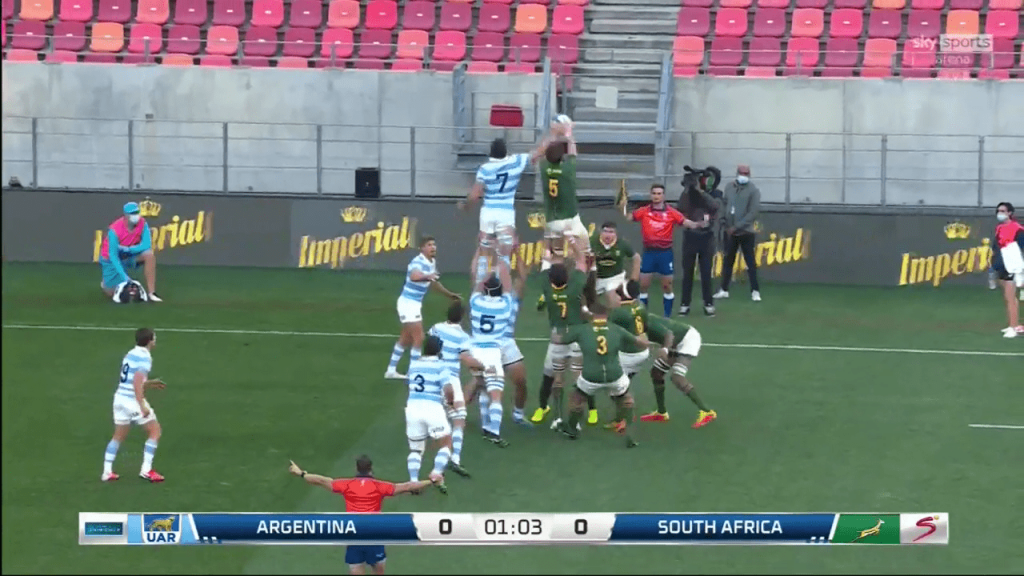 Argentina’s coaches would have analysed South Africa’s series versus the British & Irish Lions in their preparation for the game. During that series, the Springbok primarily targetted the front (52 per cent) and middle of the lineout (41 per cent), with just a handful of balls delivered to the back (7 per cent).