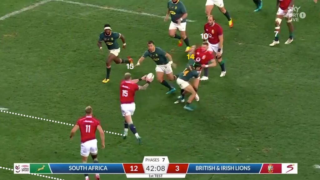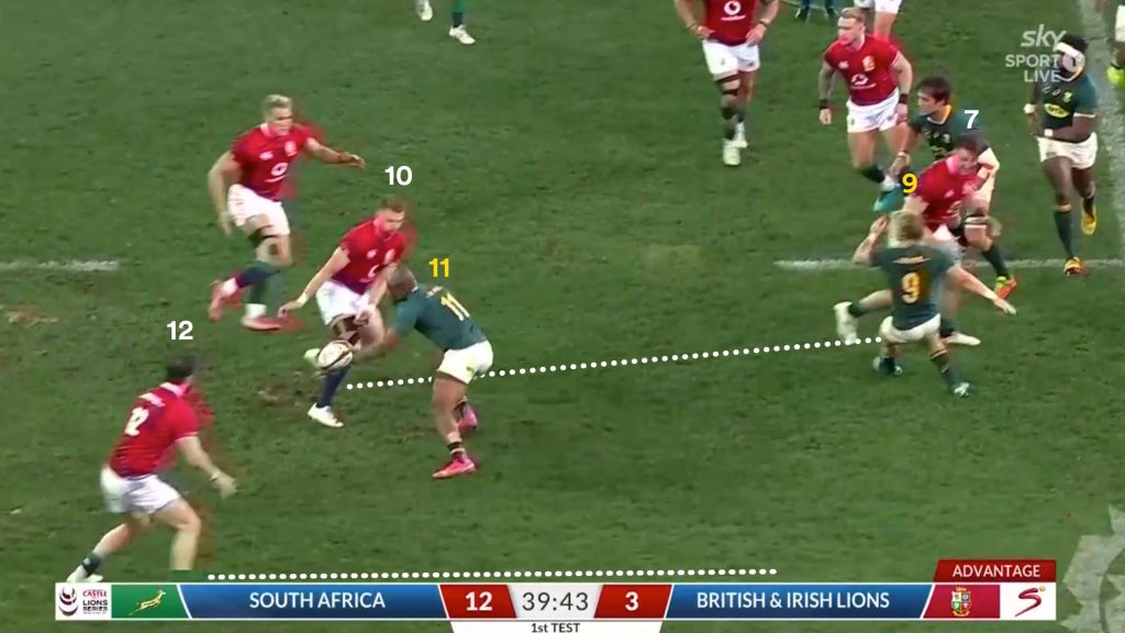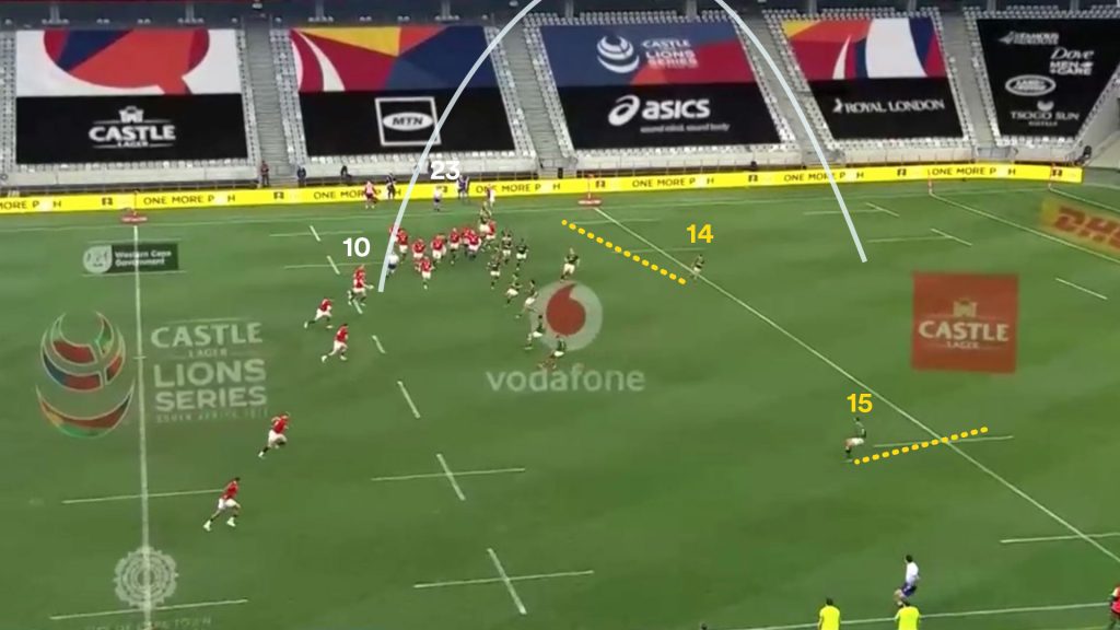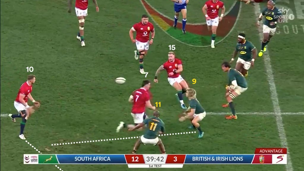 While Faf de Klerk was the main kicker for the Springboks, the Lions continued their raids with balance between No9 and No10.