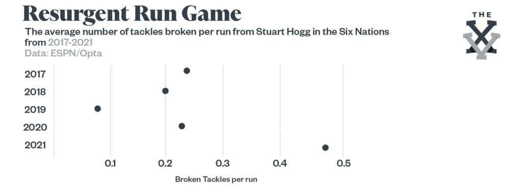 Scotland have integrated more plays around Hogg as a passer in their attacking system as his style has changed.