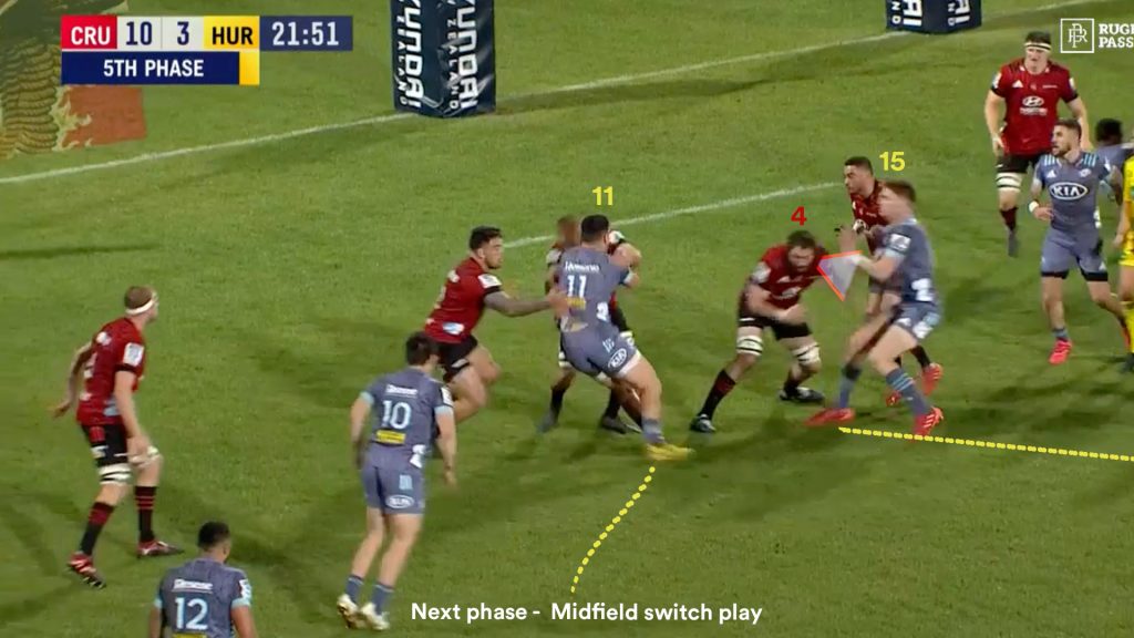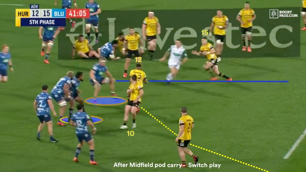 These switch plays that funnel play back towards the ruck have not been explored with much regularity, and the Hurricanes seem to be the first team to pioneer their use.